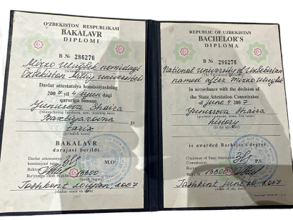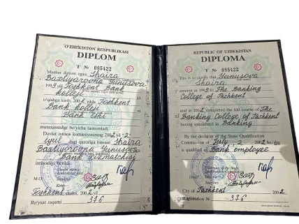 Грамота за успешней заверщене Ташкентского банковского колледжа